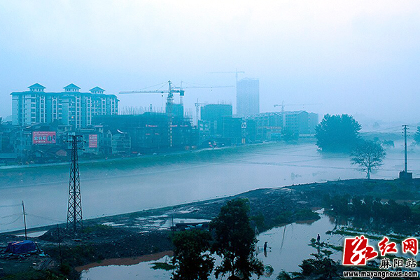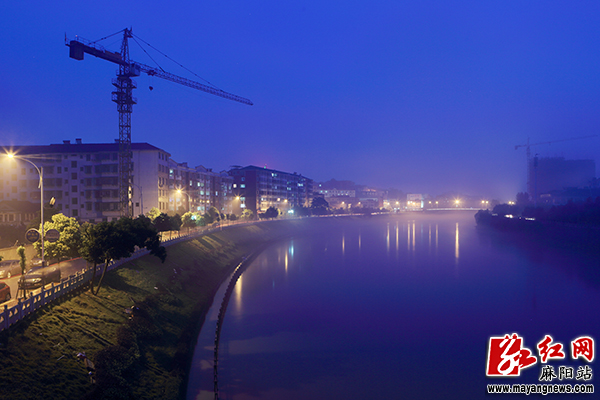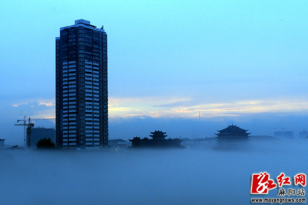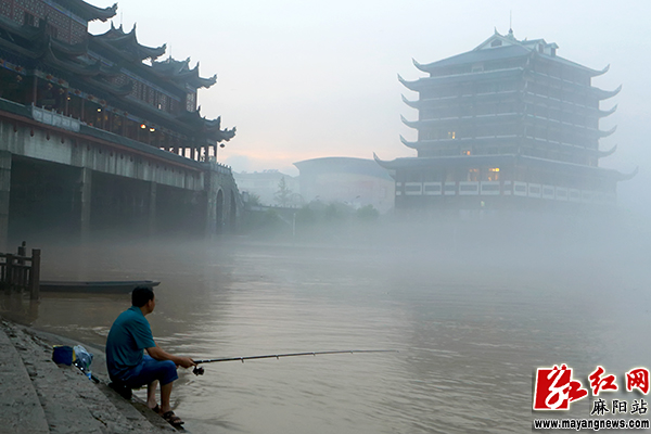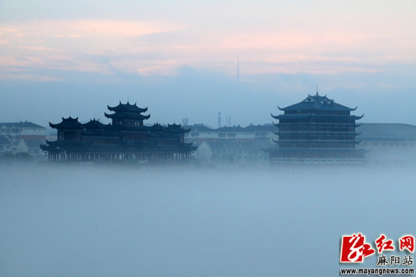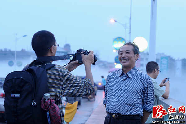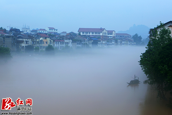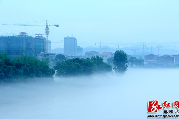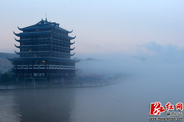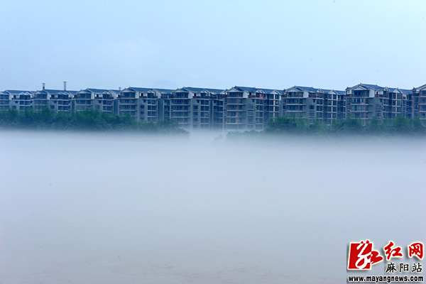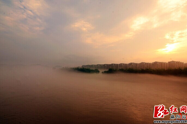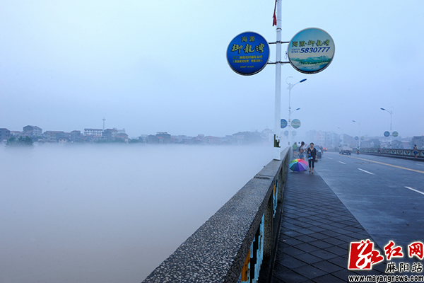 麻阳红网摄影协会张杰拍摄 当天17时起,县城段400多米宽的锦江河面上,云雾不断从浑浊的河面升起,分别从锦江大桥的上下方各自飘移,每隔20来分钟生成一次,到19时30分结束。这数百米长、白练状的云雾,让县城风雨桥、水岸明珠、锦江阁、锦江新城等建筑如在海上仙境中。